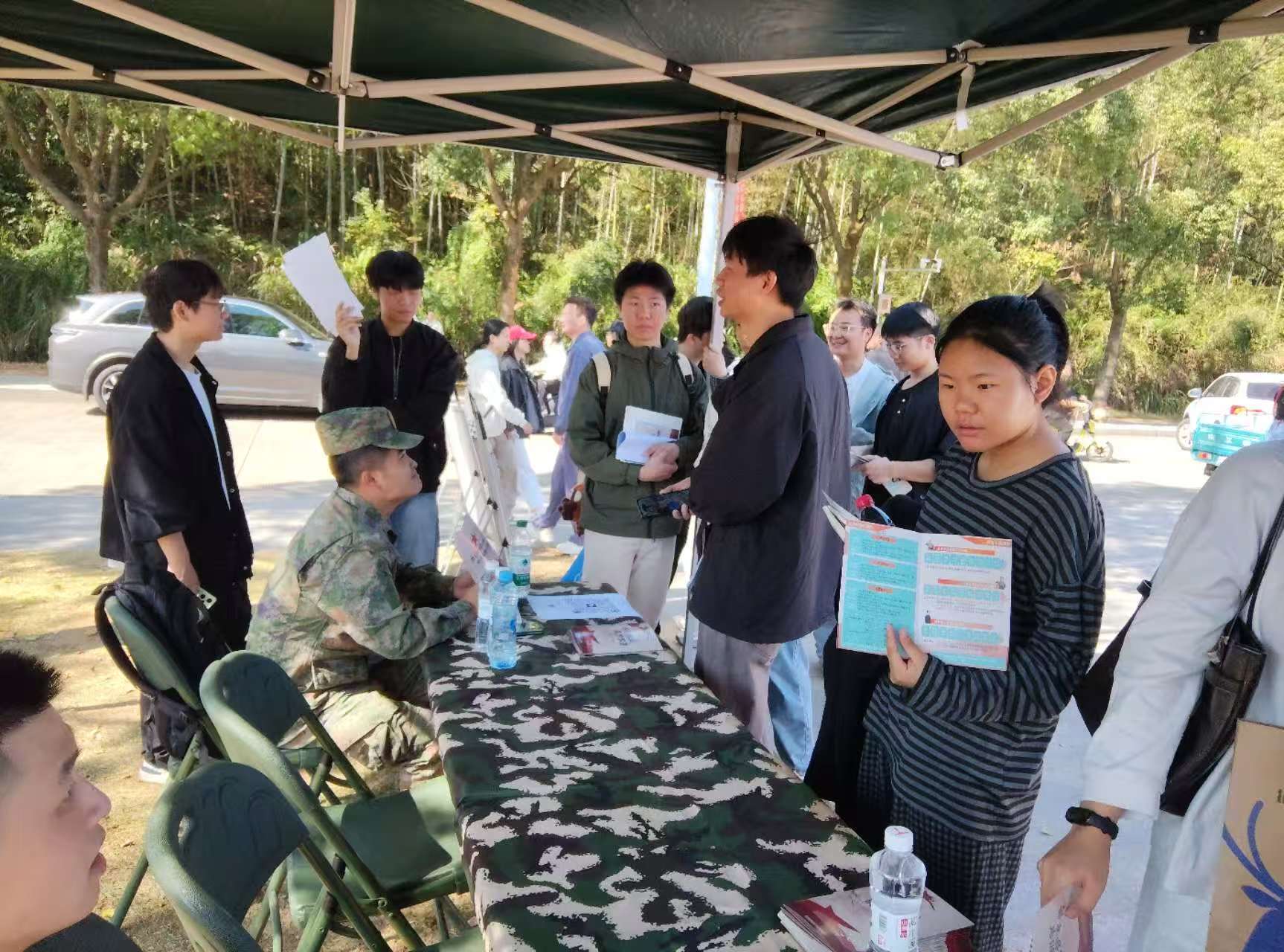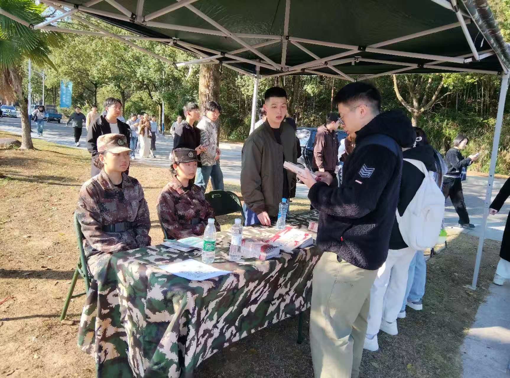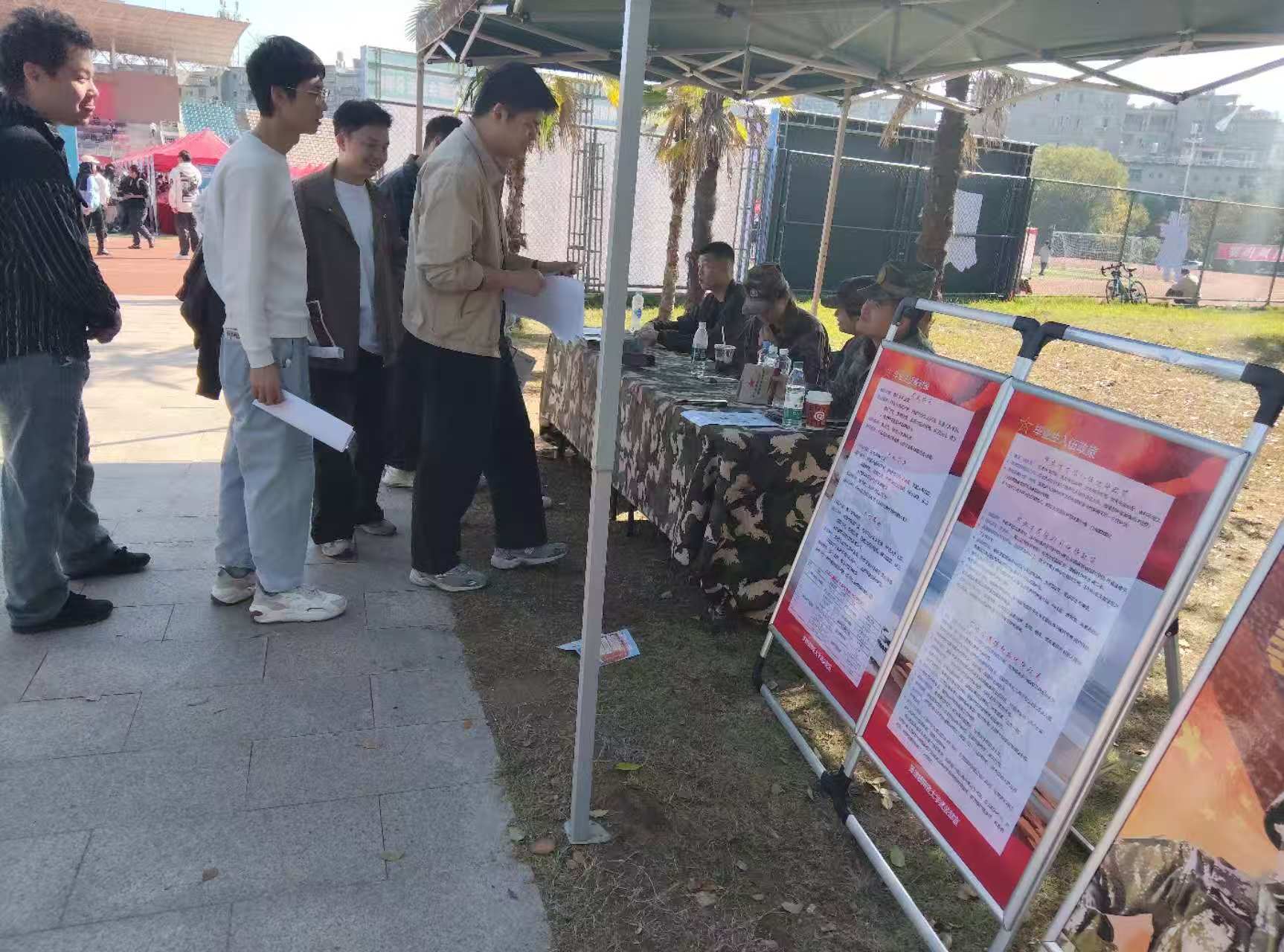 11月15日,在2026届毕业生秋季招聘会现场,武装部开展了大学生征兵宣传咨询活动,对应届毕业生进行征兵宣传,接受征兵政策咨询。活动由国防实践社承办。